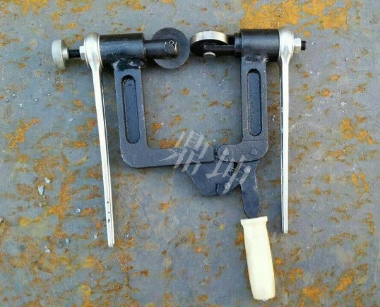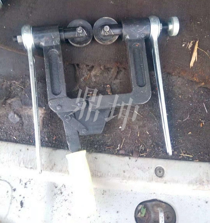 1、首先拉动压把,将两侧刀体圆弧部份贴进孔两侧,再推动压把,带动锁紧板固定支承架1和支承架2,使两圆形刀体的圆弧伸入孔内表面,并卡在轨腹壁上。