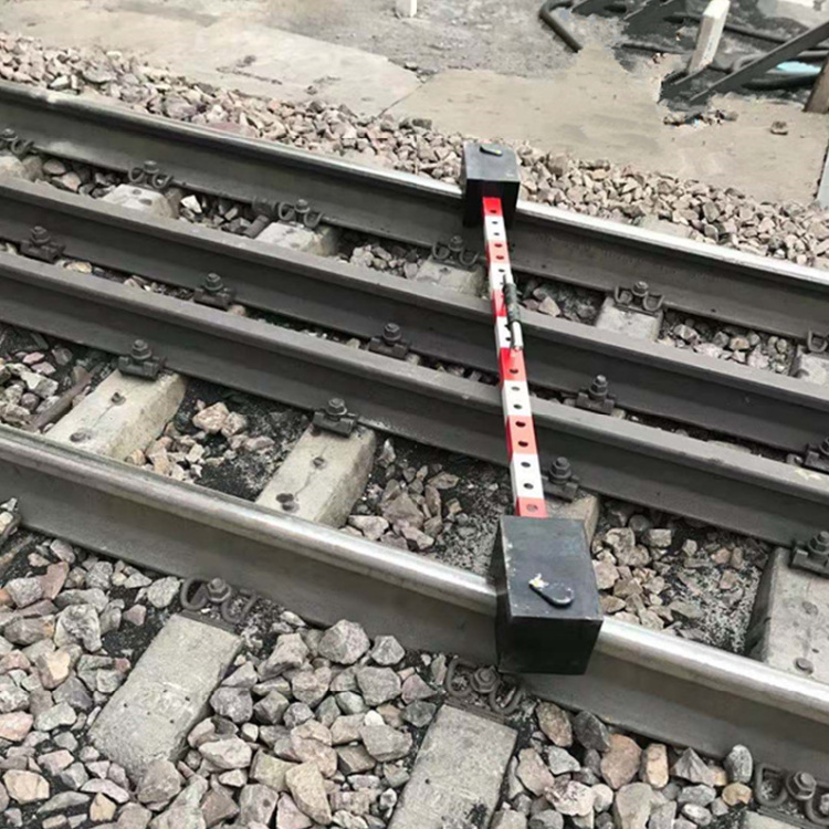 橡胶防溜枕木是过去木枕防溜的新替代产品,具有轻便、便携等优点。重量16Kg,一人便可拿到现场安装操作。将防溜枕木放在需要防溜的线路上车辆的端头,下部凹槽卡在钢轨上,用铁链从钢轨下部穿过绕到链接横杆上锁即可。
