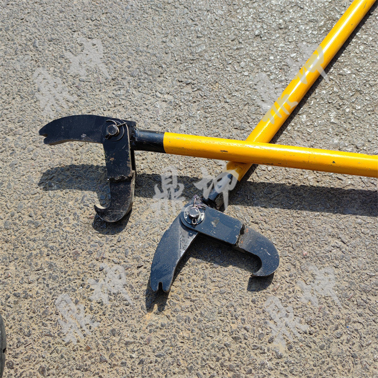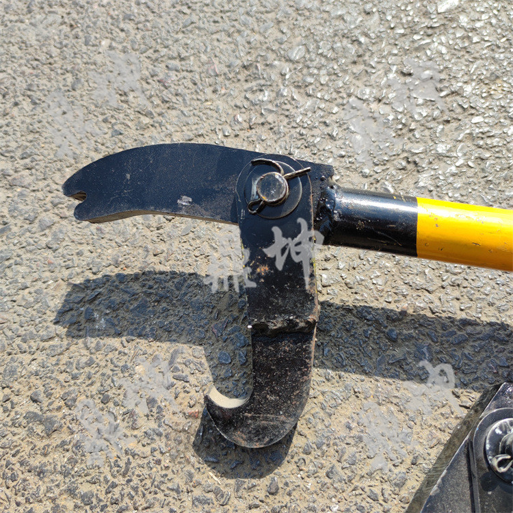 1、先将钩子钩住弹条扣件的中间部位,以固定扳头的顶端为支点向后搬动搬把,以达到拆装弹条的目的。