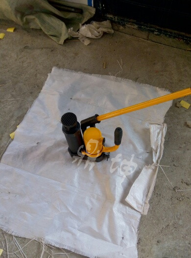 3、按顺时针旋方向旋转卸荷阀手柄使卸荷阀关闭,把操纵杆插入扳杆套内,摇动操纵杆,使高压油通过油泵内腔的排油阀输入工作油缸,活塞伸出,顶动轨枕进行调整至作业要求。