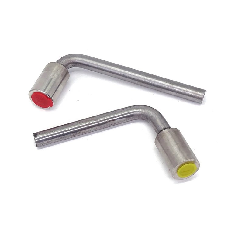 与接地体连接的端子叫接地端子。桥隧型接地端子是由不锈钢端子和连接圆钢组成,其不锈钢端子的长度40mm、外径30mm;不锈钢端子前端设有M16螺栓孔,M16螺栓孔的螺纹长度不小于16mm;不锈钢端子的后端为一段总长度不小于150mm的Φ16连接圆钢,连接圆钢分为直型和直角型(L型)二种。